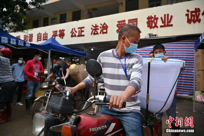 村民自发使用摩托车运送救援物资