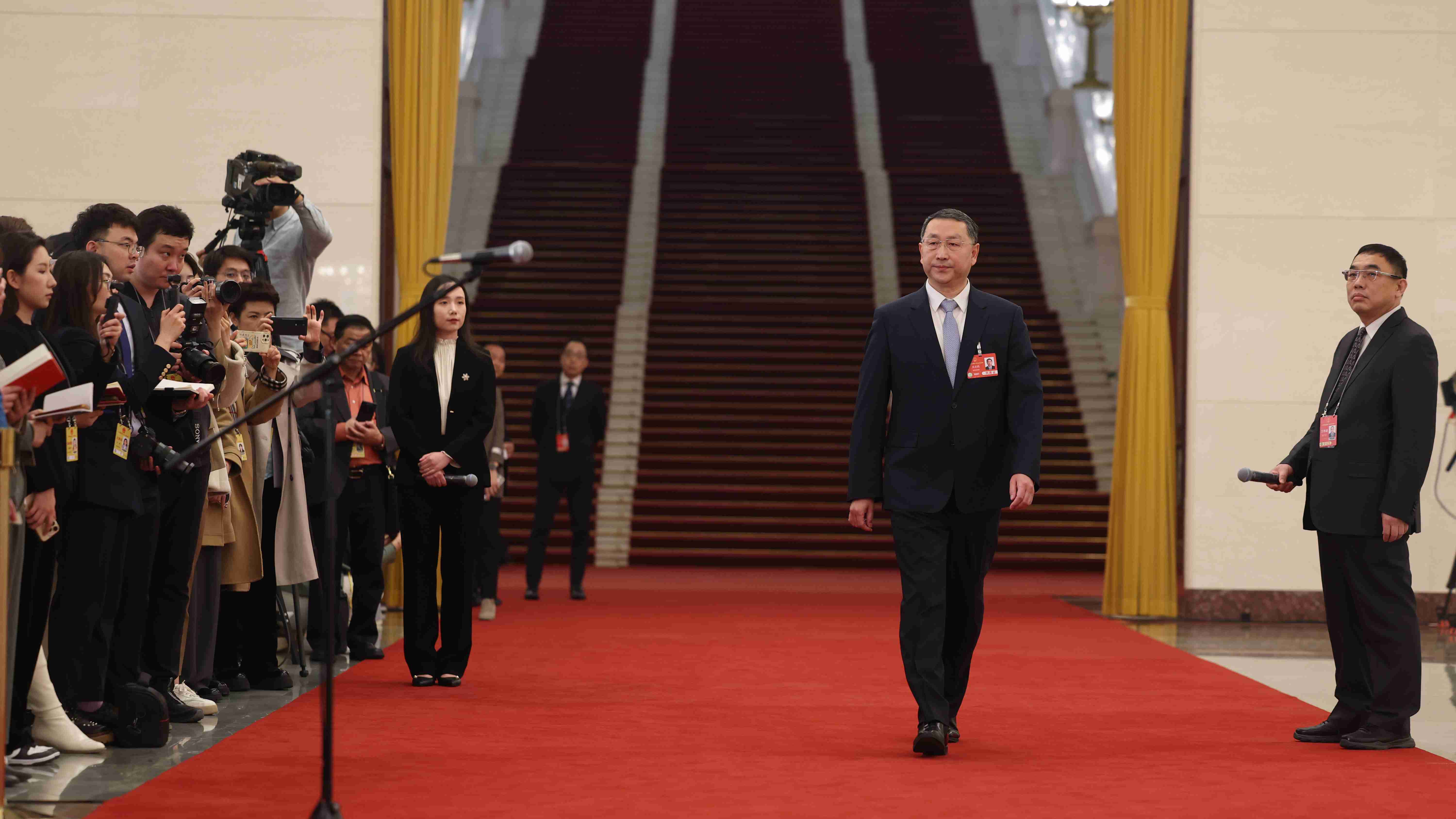 3月11日下午闭幕会后,在人民大会堂北大厅举行十四届全国人大三次会议第三场“部长通道”集中采访活动,邀请部分列席会议的国务院有关部委主要负责人接受采访。