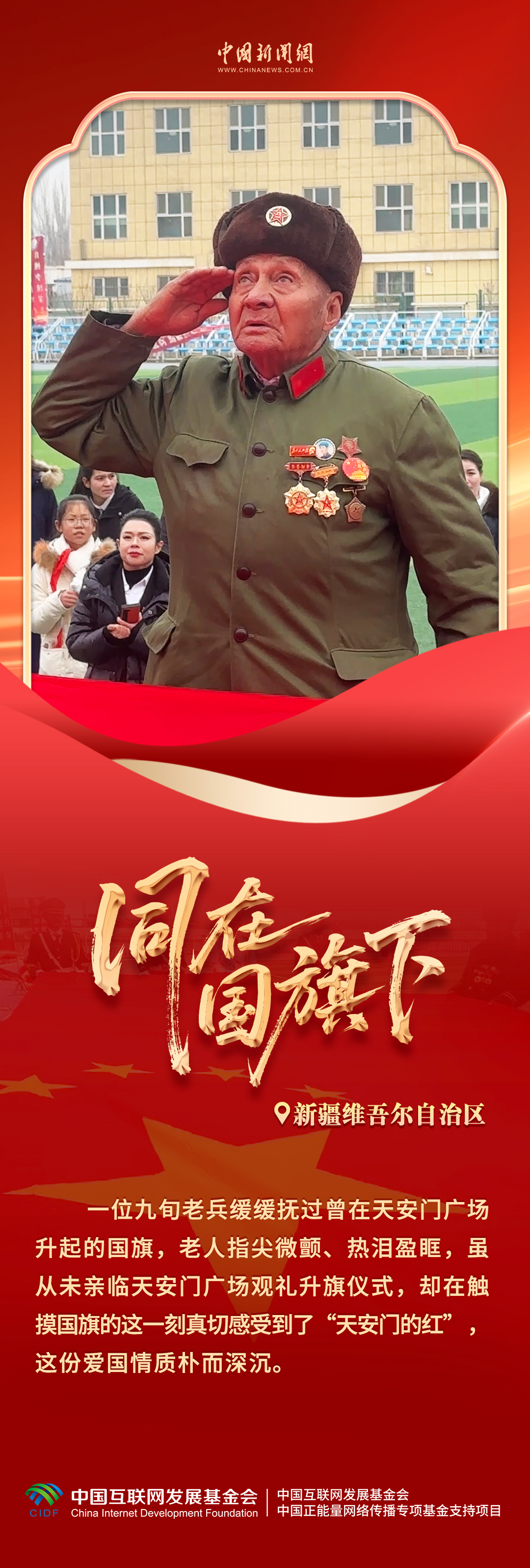 【同在国旗下】未到天安门却抚到“天安门的红” 新疆九旬老兵摸到天安门升旗的国旗后热泪盈眶
