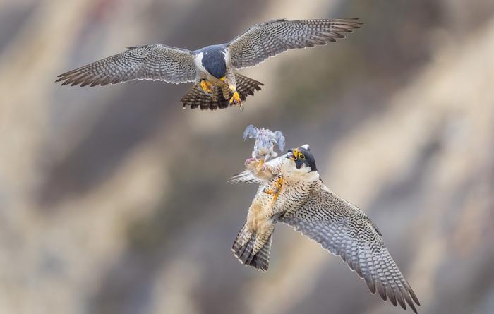 游隼飞行中传递食物
