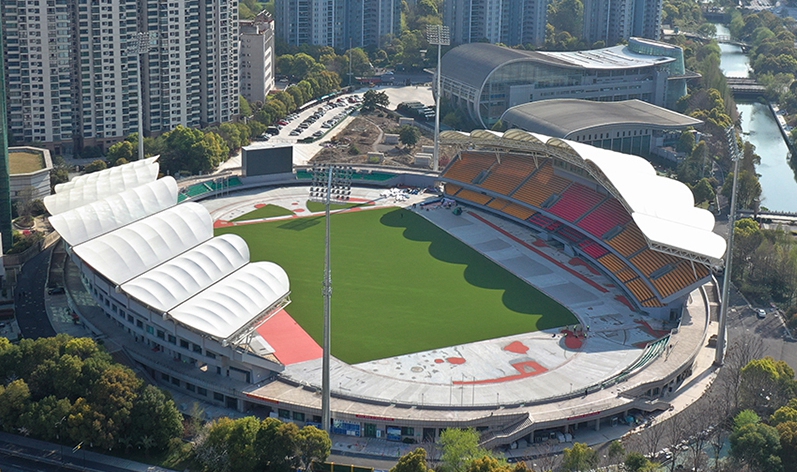 上城体育中心体育场为亚运会足球项目比赛场地,位于杭州市上城区,地处亚运村西北方向且相距约9.5公里。总建筑面积16063平方米,观众席位数13544座。
