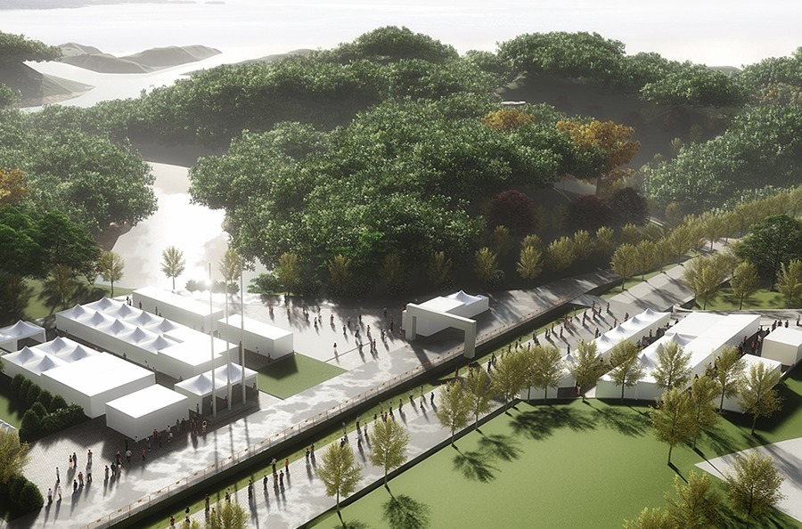 桐庐马术中心,位于杭州市桐庐县瑶琳镇的林场地块,距离亚运村约100公里。地块南面毗邻分水江,背靠天目山余脉,风景优美。项目设置马术竞赛场馆场地及配套设施,包括障碍赛、盛装舞步、越野赛等相关比赛场地、赛道及设施,还包括训练场、马厩、马医院等附属设施。占地面积730余亩(另租150亩临时用地作为越野赛道),总建筑面积约5.2万平方米。