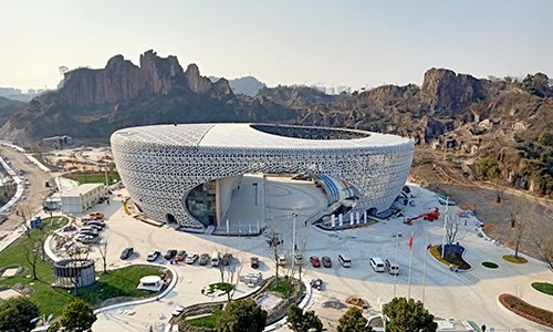 绍兴市柯桥区羊山攀岩中心为亚运会攀岩项目比赛场馆,位于绍兴市柯桥区齐贤街道,羊山石佛风景名胜区内。规划用地面积15826平方米,总建筑面积8950平方米,主体建筑高度小于24米,设计座位2100个。